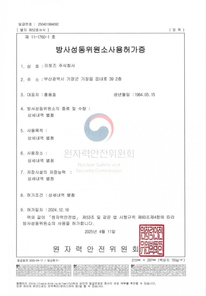 방사성동위원소 사용허가증